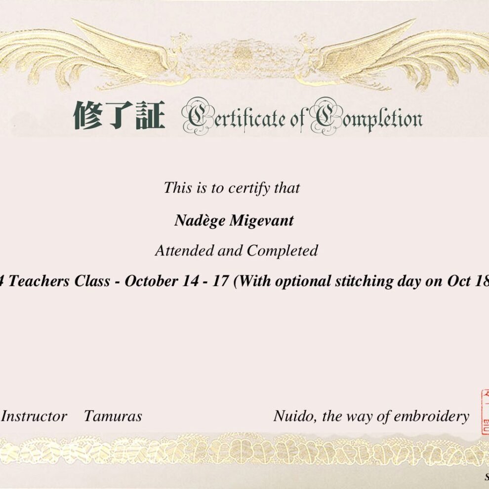 J’ai adoré le cours de broderie japonaise avec Nadège. Très à l’ecoute, très professionnelle. J’ai passé un très bon moment.